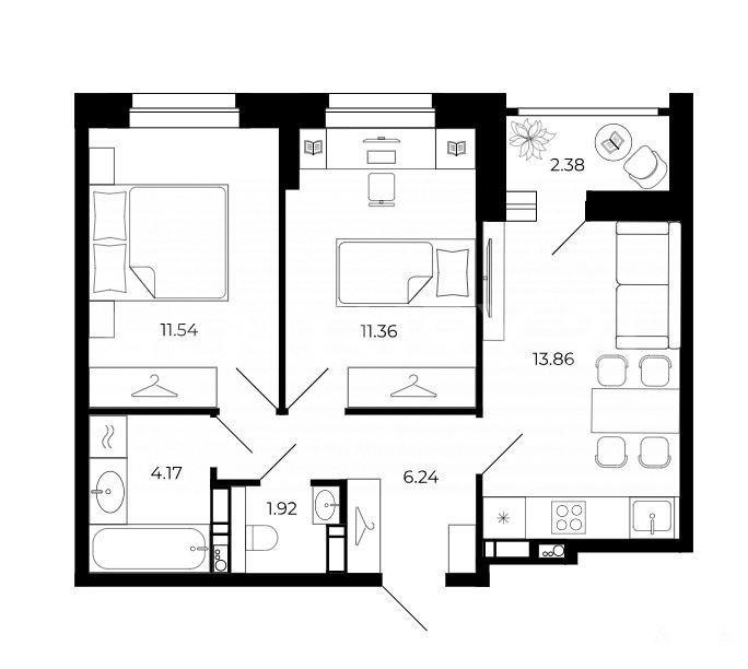 - 13.86 м²