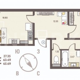 Продается квартира в строящемся доме. Сдача дома 2 кв 2026 года. Квартира с евро планировкой Е2. Бесплатное парковочное место для авто! кухня - гостиная 18.8 кв. м. с выходом на застекленную лоджию 4.40 кв. м. спальня 15.68 кв. м., спальня 11.67 кв.м., Это новый жилой комплекс комфорт-класса...