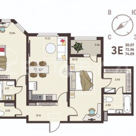 Продается квартира в строящемся доме. Сдача дома 2 кв 2026 года. Квартира с евро планировкой Е3. Бесплатное парковочное место для авто! кухня - гостиная 19.25 кв. м. с выходом на застекленную лоджию 4.24 кв. м. спальня 16.13 кв. м., спальня 13.94 кв.м., мастер-спальнягардеробная...