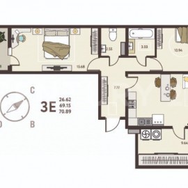 Продается квартира в строящемся доме. Сдача дома 2 кв 2026 года. Квартира с евро планировкой Е2. Бесплатное парковочное место для авто! кухня - гостиная 19.25 кв. м. с выходом на застекленную лоджию 4.24 кв. м. спальня 15.68 кв. м., спальня 12.90 кв.м., спальня 13.35 кв.м. Это новый жилой...