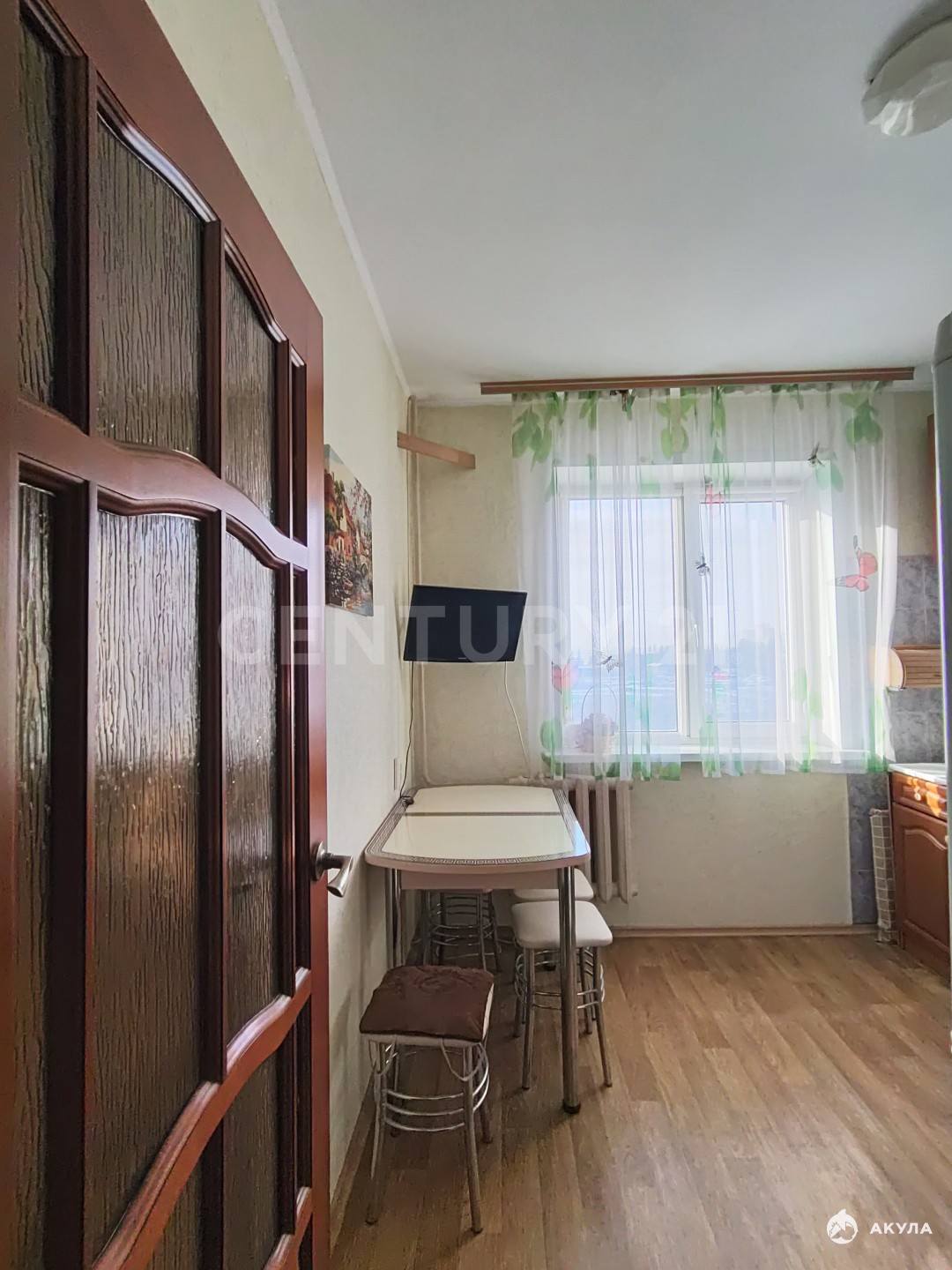 Квартира просторная, теплая и светлая. Все окна выходят во двор. Дополнительной зоной для хранения является просторный балкон, отделанный деревом.